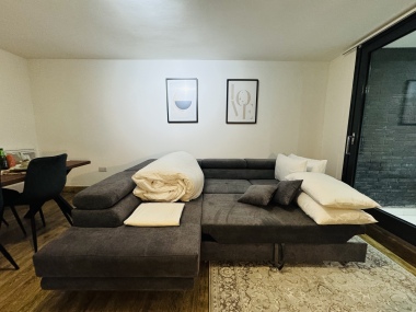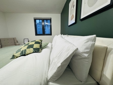 This newly decorated One-bedroom flat in central London exudes modern charm and sophistication. Freshly painted in soft, neutral tones, the walls create a warm and inviting atmosphere. As you enter, you’re greeted by a large kitchen area that seamlessly blends comfort and style. The modern TV is mounted on the wall, perfect for cozy movie nights. Plush furniture invites relaxation, while large windows fill the space with natural light, offering views of the vibrant city below.